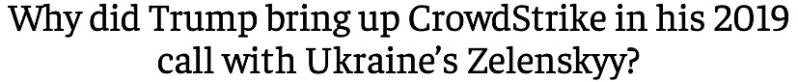 Tako je! Trump ne samo da je pitao Zelenskog o Bidenovom poslovanju u Ukrajini, već je također pitao o CrowdStrikeovim tajnim poslužiteljima datoteka koji su tamo smješteni, zaštićeni od uplitanja američkih policijskih snaga. Ima previše toga kako bi se ovdje upustila u tu priču, no kratki prikaz, riječima predsjednika Trumpa: