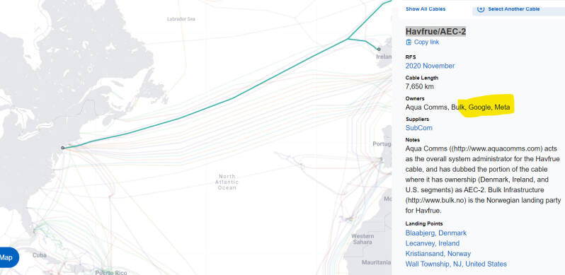 Čemu služe svi ovi kablovi? Pogledajmo jednu od web stranica dobavljača kabela. Dolje lijevo na slici je jedan od kabela koji posjeduje SubSea Cable Services: https://seabornnetworks.com/