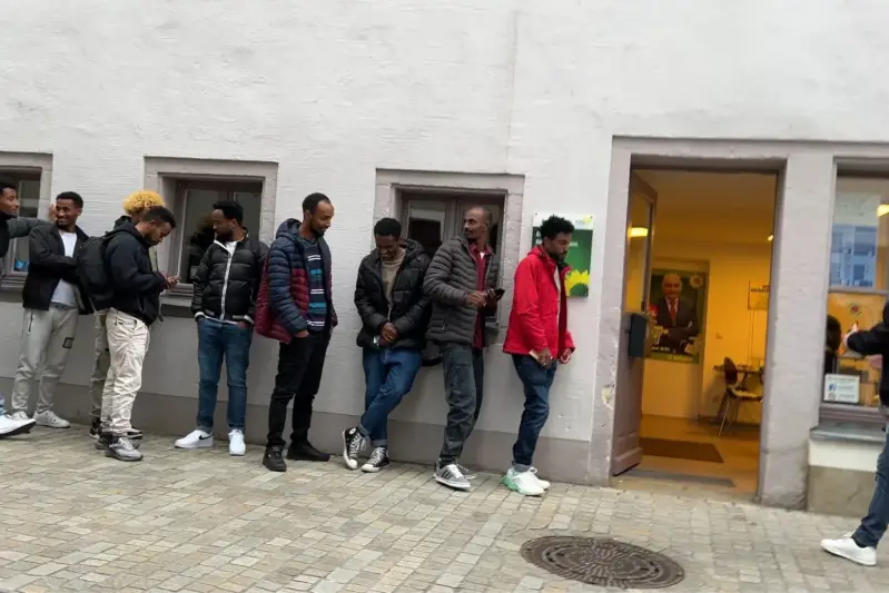 Želimo znati što to točno znači, pa se vraćamo u ured Zelene stranke u 16 sati, gdje se sada odvijaju razotkrivajuće scene. Ispred sada otvorenih vrata ureda se stvorio dugačak red imigranata. Ovaj put ima ih znatno više nego prije dva tjedna. Dobrih stotinu ljudi stalo je u red za razmjenu novca. Jedan od mogućih razloga: prošli put smo bili ovdje sredinom mjeseca. Sada smo tu na kraju mjeseca, a na platne kartice je tek sjeo svježi novac iz državne blagajne.