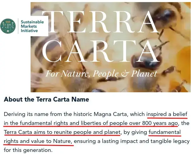 U isto vrijeme, Charles je pokrenuo svoj projekt Terra Carta, koji je najavljen u Davosu 2020. godine. Terra Carta daje globalni mandat vladama i korporacijama koje se pridruže ovoj inicijativi.
