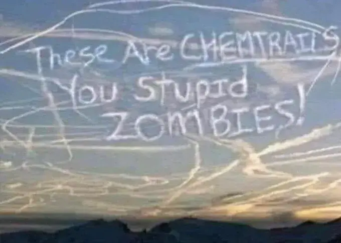 U državnim školama nema predavanja iz biologije, anatomije ili kemije o chemtrailsima koji truju učenike, učitelje i roditelje. Centri za indoktrinaciju nisu osmišljeni da obrazuju umove, već da pojačaju njihovu tupost i nauče ih da nikada ne govore o zabranjenim "ludim" temama.