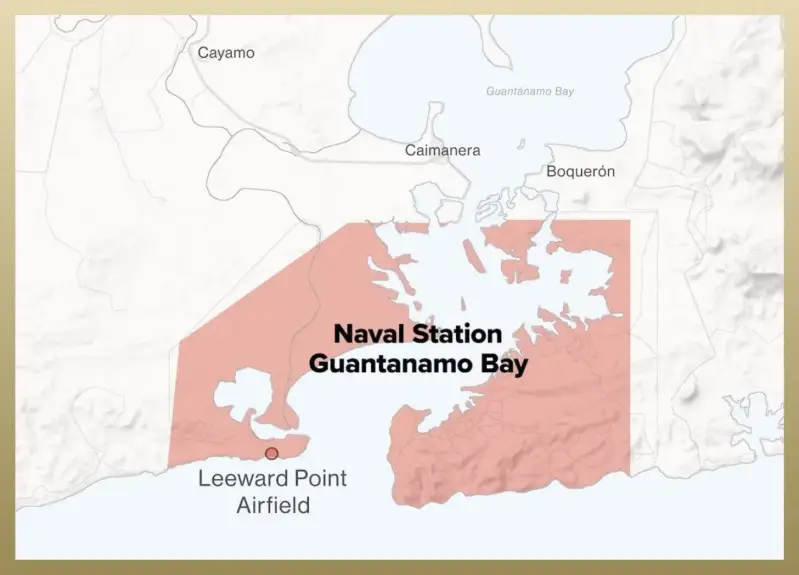 "Zatvorski logor Guantanamo Bay, također poznat kao GTMO (/ˈɡɪtmoʊ/ GIT-moh), GITMO (/ˈɡɪtmoʊ/ GIT-moh), ili jednostavno Guantanamo Bay, vojni je zatvor Sjedinjenih Američkih Država unutar Mornaričke postaje Guantanamo Bay (NSGB), na obali Guantánamo Baya, Kuba."