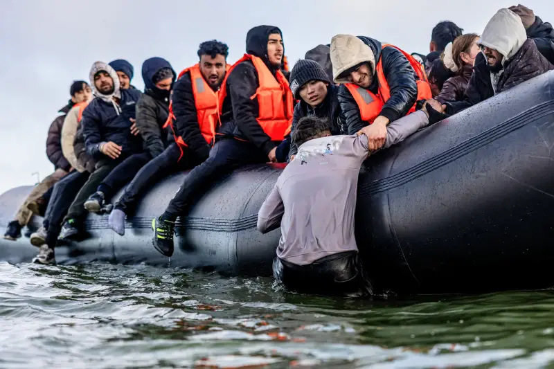 Migranti se ukrcavaju na krijumčarski čamac koji pokušava prijeći La Manche kod plaže Gravelines, Francuska, 26. ožujka 2025.