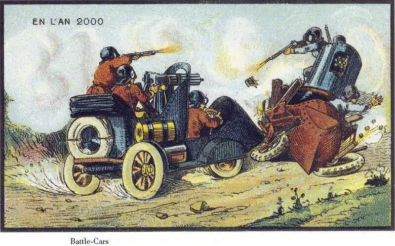 Davne 1900. godine je grupa divno optimističnih francuskih umjetnika sjela uz vino, bagete i previše mašte, te su pokušali predvidjeti 2000.-tu godinu. I oh, kako je to blizu! Umjesto krilatih poštara i robotskih brijača, imamo izgaranje, anksioznost zbog WiFi-ja, milijardere koji se igraju "Escape the Earth".....Uživajte u vožnji: