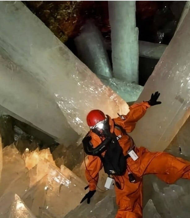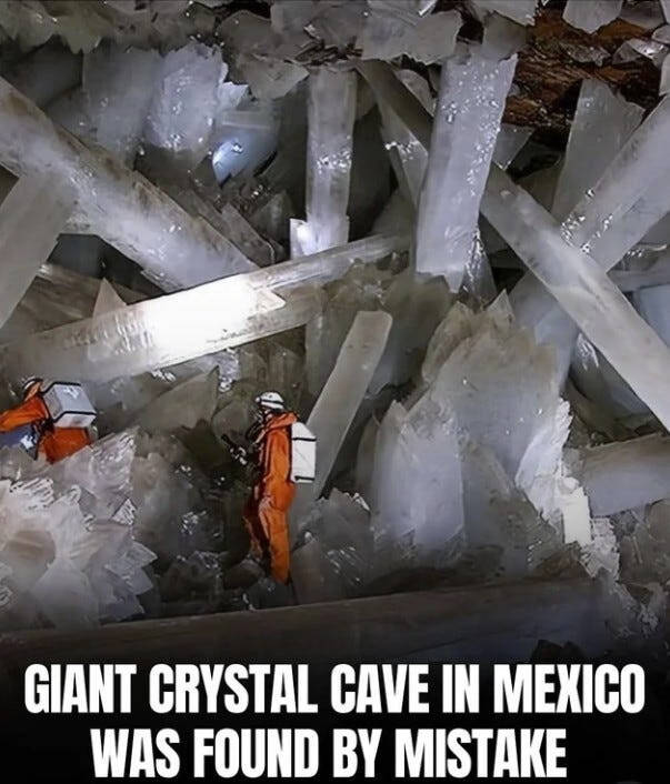 Divovska kristalna špilja ispod Chihuahue u Meksiku. Ovo podzemno čudo je otkriveno potpuno slučajno 2000. godine, kada su dva brata bušila u rudniku Naica, u potrazi za srebrom....