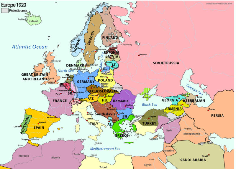 Glavne razlike između tih godina su bile rušenje Austro-Ugarske i stvaranje novih država: najkritičnije je ovdje bilo stvaranje Čehoslovačke i Poljske. Čehoslovačka je izdvojena iz stare Austro-Ugarske, i sama je već bila nestabilna kompilacija dviju bivših regija, koje će se na kraju raspasti. Ponovno je stvorena Poljsku, ranije nestala s karte, 1785. godine, dijelom od Njemačke.