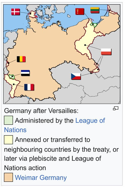 Broj stanovnika i teritorij Njemačke je smanjen Versajskim ugovorom za oko 10%.