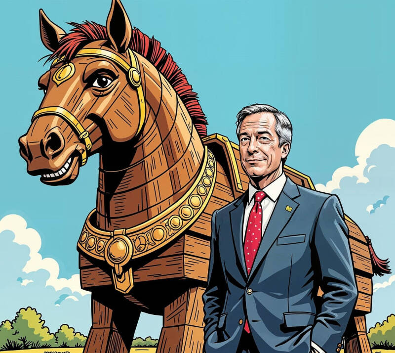 Nigel Farage nije proveo 25 godina boreći se protiv establišmenta. Proveo je 25 godina postajajući taj establišment, dok vas je uvjeravao da se još uvijek bori protiv njega. On ne isušuje močvaru - on jest močvara. On ne preuzima kontrolu - on je prodaje najvišem ponuđaču, uz podjelu profita. On nije tvoj politički prvak - on je oligarhijski zaposlenik, dok mu ti daješ plaću putem politika koje su osmišljene da prenesu tvoje bogatstvo njegovim poslodavcima.