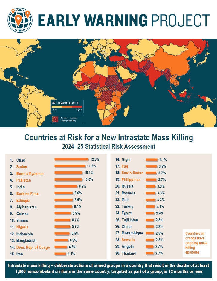 Da vidimo: Turska i Egipat su navedeni kao zemlje kojima prijete masovna ubojstva. Jemen je tamo. Irak i Iran su tamo. Rusija i Kina su također tamo. Ali, nema Izraela. Bože, kako su to propustili?