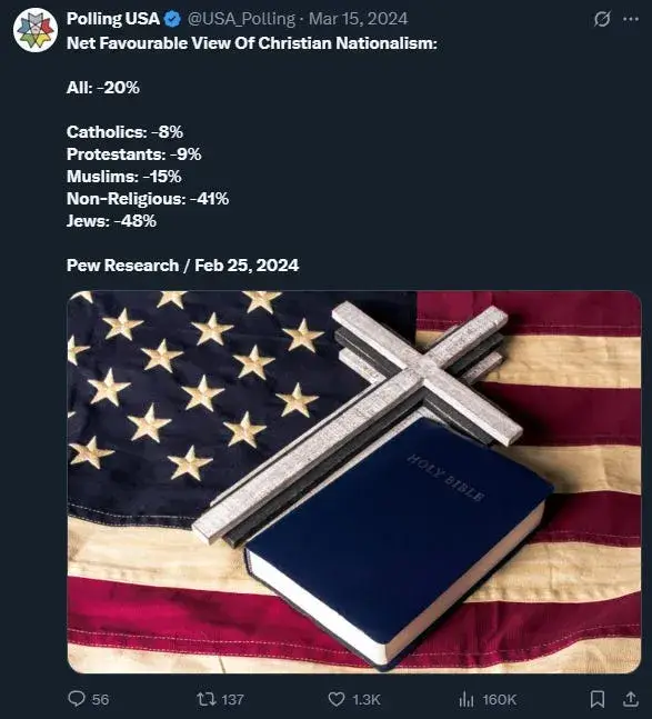 Slobodni ste provjeriti činjenice bilo koje od ovih tvrdnji, a ja neću namjerno navoditi izvore (za razliku od svega što ću slijedeće reći). Svaka iskrena osoba koja ovo čita teško će dalje argumentirati kako je Izrael "sekularan", jer ono što sam upravo opisao ide daleko dalje od vlažnih snova tvrdokornih kršćanskih nacionalista u Americi.