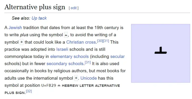 Konačno, najsmješnija, ali možda i najznačajnija, izraelska praksa prema kršćanima i Zapadu općenito, jest nekorištenje znaka plus (+) u matematici: