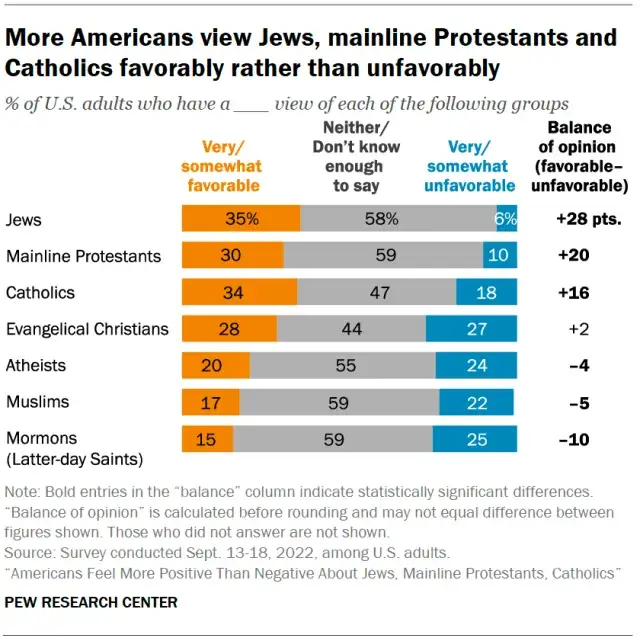 Istovremeno, američki stavovi prema Židovima (ovo prikupljanje podataka održano je prije 07. listopada) vrlo su pozitivni, ako se ukloni kategorija "ne znam":