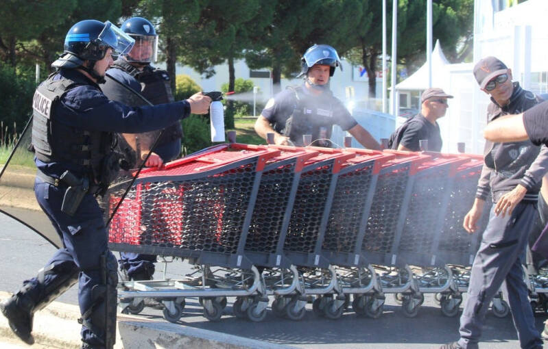 Smišljen je plan za blokiranje glavne ceste prema Nîmesu, ali policija je to predvidjela i bila je spremna zaustaviti napredovanje parade. Poluozbiljan pokušaj upada u policijske redove, mini vlakovima kolica iz supermarketa, osujećen je kada su policajci počeli koristiti suzavac. Svi u blizini, uključujući i mene, bili su prisiljeni povući se, oči su me pekle.