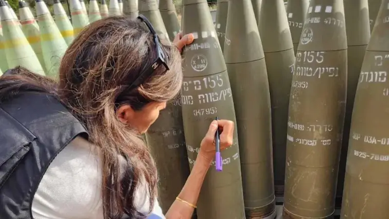 Nikki Haley ponosno potpisuje izraelske bombe koje financiraju zapadni Izraelci.