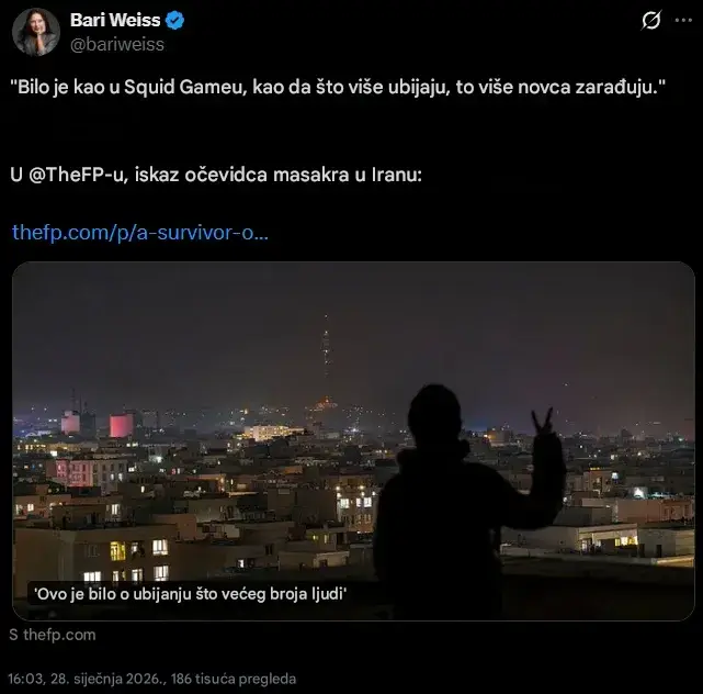 6 milijardi prosvjednika, a za koje Izrael tvrdi da ih je ubio "zli režim" u Teheranu, čudno uključuje mlade žene iz Izraela i Irana, ali koje su čudom još uvijek žive i bile su iznenađene kada su saznale da su ubijene u ovim prosvjedima, koje su organizirali Mossad + Zapad i Mossad (ovaj put zajedno).