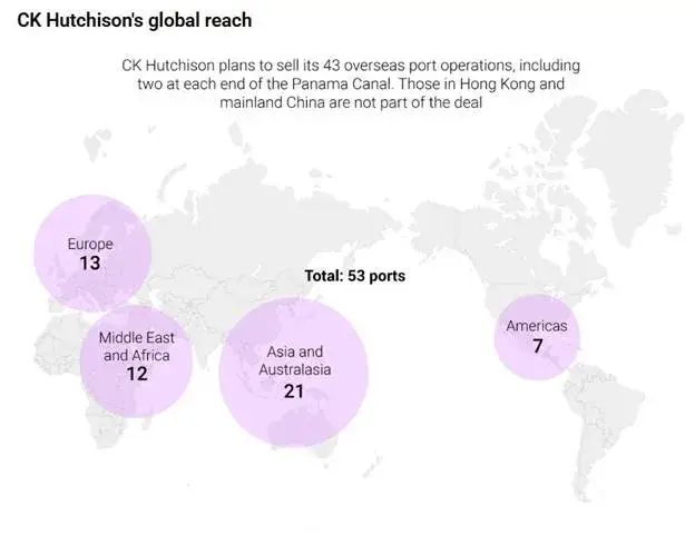 Osim panamskih luka, ugovor BlackRocka sa CK Hutchisonom bio je kupnja i 41 druge prekomorske lučke operacije; od ukupno 53 luke.