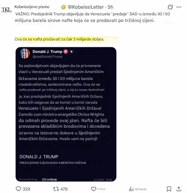 U slučaju da niste dobili pročitali dopis: u Venezueli nikada se nije obračunavalo sa narkokartelima, radilo se o nafti. Je li itko čuo što SAD poduzima kako bi se pozabavio problemom droge koja izlazi iz Venezuele - od otmice Madura? Ne, naravno da ne. Zašto bi se SAD obračunavale sa narkokartelima - kada su uložili toliko vremena i novca da ih tamo postave?