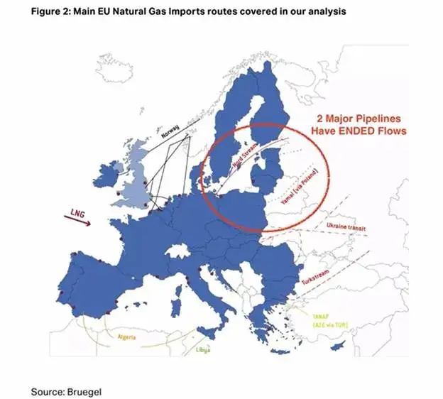 Ovaj prekid smanjuje otprilike 5% ukupne opskrbe plinom u EU i uvelike je koncentrirana u srednjoj i južnoj Europi. U siječnju su se ove zemlje našle u poziciji da što prije pronađe alternativne energetske rute, ili se suoče sa hladnom i tmurnom zimom.