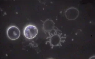 Ovo izgleda identično ponašanju umirućih krvnih stanica u eksperimentu Reichovog krvnog testa. Ono što ovdje vidimo su stanice koje su zatrovane i umiru. Također vidimo stvaranje šiljastog proteina na posljednjem slajdu.