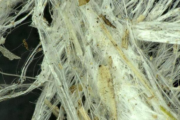 Slika: povećanje od 200x, vide se tamnije niti i strukture krhotina