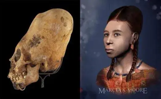 Marcia Moore napravila je rekonstrukciju na temelju činjenice što ova lubanja potječe iz Perua. Iako gotovo svi mumificirani ostaci na izduženim lubanjama imaju crvenu kosu i nisu porijeklom iz Sjeverne Amerike, što je izazvalo kontroverze.