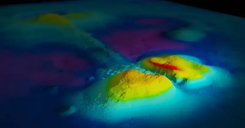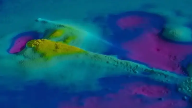 Pogled na objekt na dnu Baltičkog mora, koji se zaustavio milju udaljen od podmorske planine koju je prepolovio. Očito mjesto pada.
